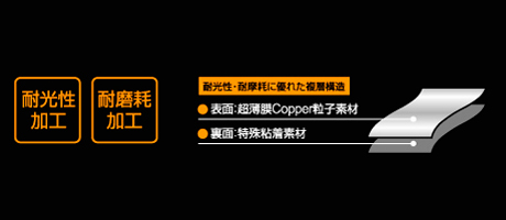 耐光性・耐摩耗に優れた複層構造を採用し、色褪せしにくく、かつ剥がれにくいシートになっております。