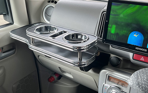 取付はダッシュボードに差し込みと両面テープで貼付けで、純正のカップホルダーもそのまま使用ができる優れた商品です。